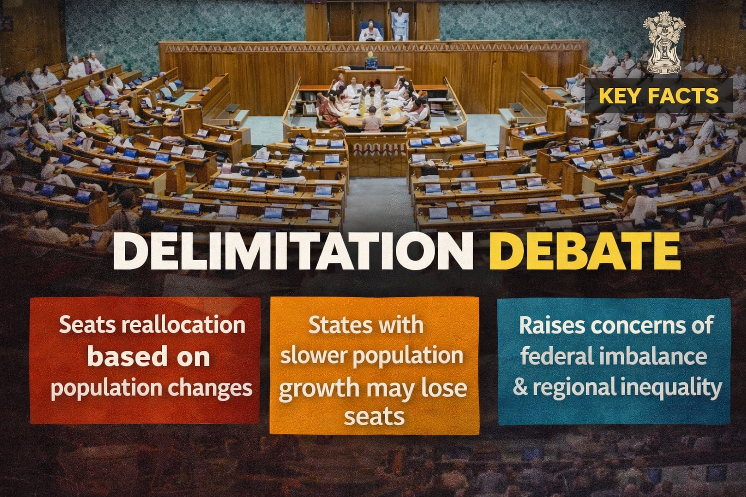 - Reflecting Demographic Changes: High population growth states such as Uttar Pradesh and Bihar remain underrepresented, while states like Kerala and Tamil Nadu with lower growth fear reduced political influence.